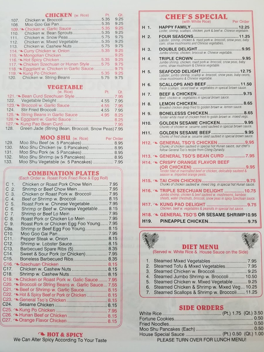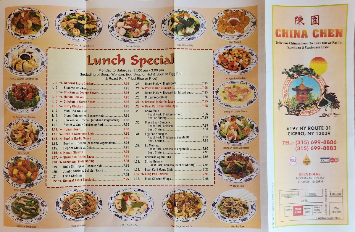 If you're in the mood for delicious and authentic Chinese cuisine, China Chen Menu offers an impressive selection of dishes that are sure to satisfy your cravings. Located at 6197 NY-31 Unit 2 in Cicero, NY, this cozy spot is known for its classic favorites as well as creative twists on traditional flavors. From savory stir-fries to rich, flavorful soups, there's something for everyone. The menu also features an array of perfectly prepared rice and noodle dishes, along with a variety of appetizers and savory entrees. Whether you're stopping by for a quick bite or looking to enjoy a leisurely meal, China Chen provides a welcoming atmosphere and consistently delicious food. The variety of options ensures that no matter your taste, you'll find something to enjoy.